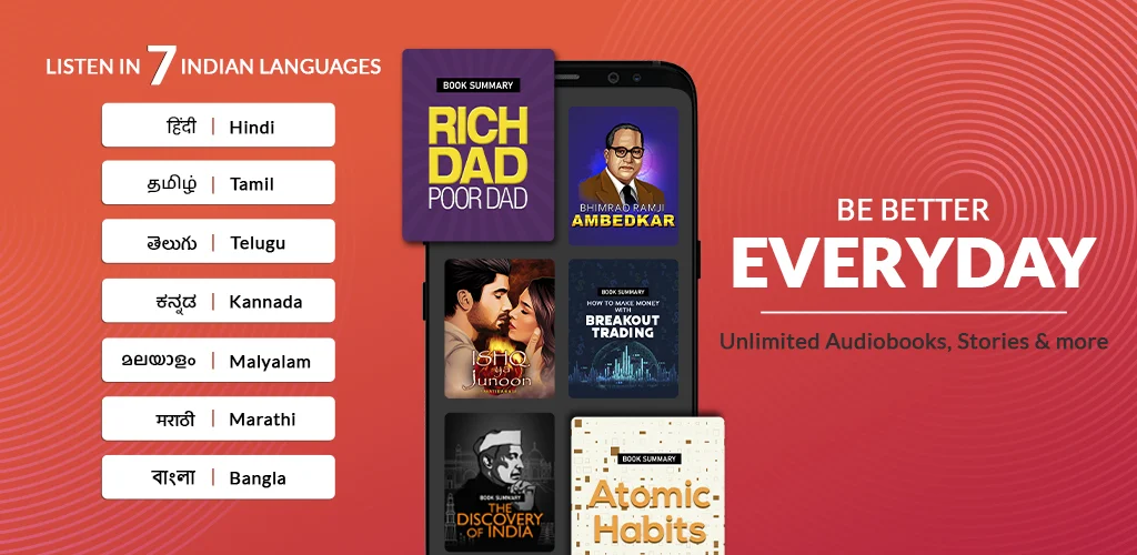 Here, in the serving of Kuku Fm Mod APK, enjoy the vibrant atmosphere of interest and entertainment through the Audio lifestyle. It lets users dive into the immemorial experience of listening to outstanding podcasts, songs, biography, stories, comics, comedy, etc.